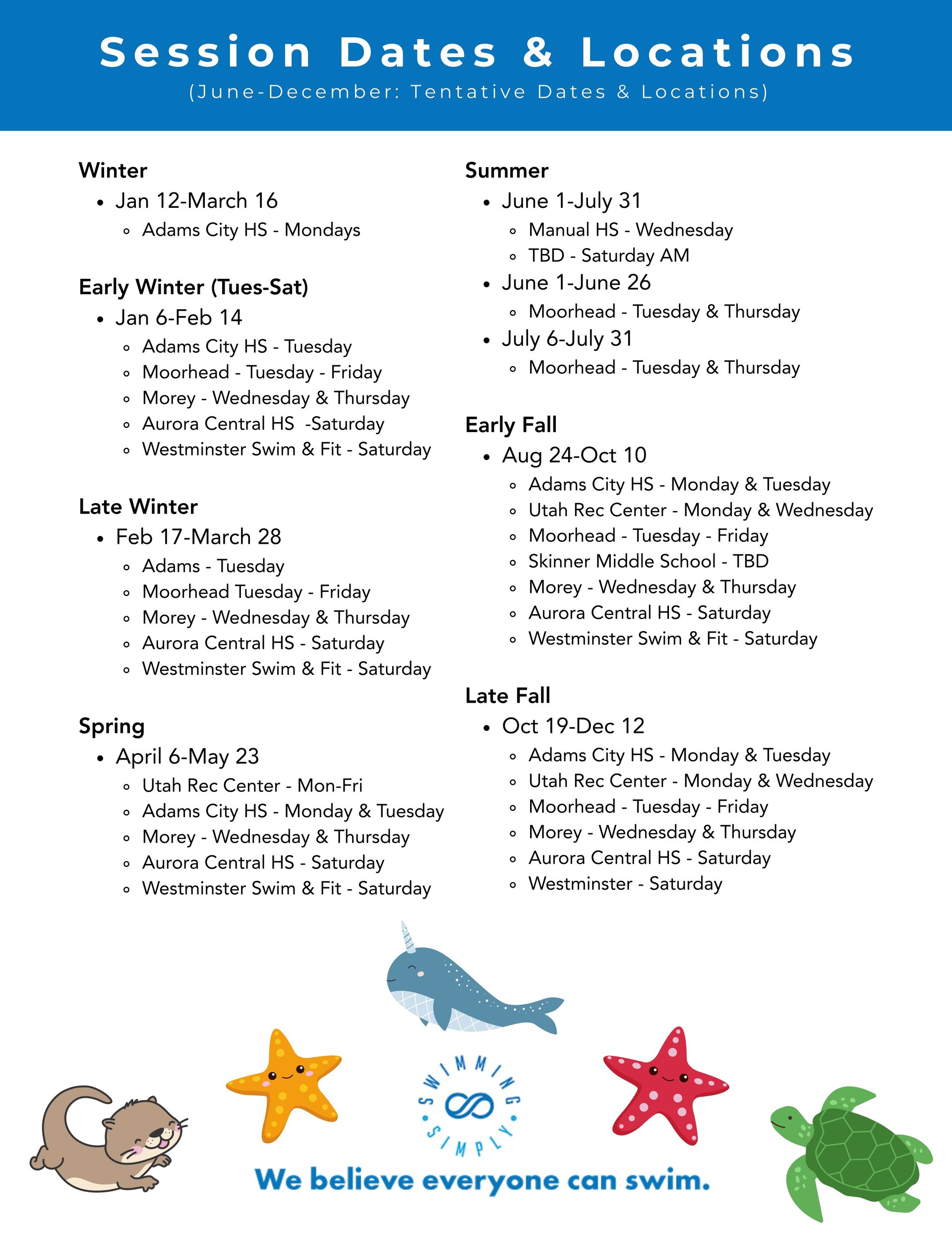 Swim Otters - Wheat Ridge Closure Calendar